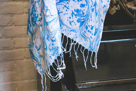 Met de marmertechniek kun naast de prachtige papiervellen ook unieke prints maken op stof!